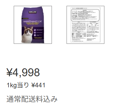 コストコのキャットフードは倉庫店だと2700円くらいなので送料1000円相当。まとめ買いすると高くつきそう。