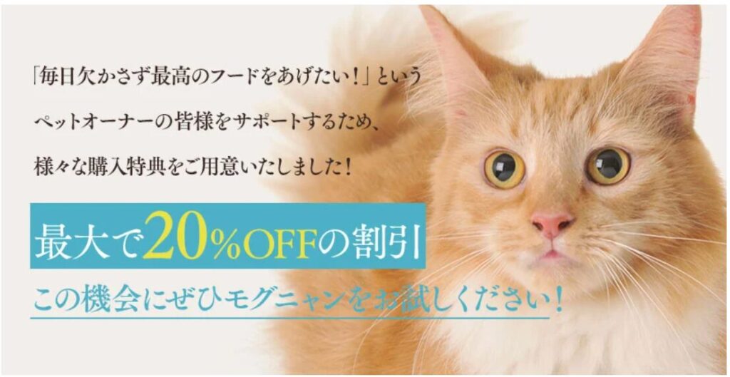 モグニャンは定期便やまとめ買いで最大20%オフになります。
