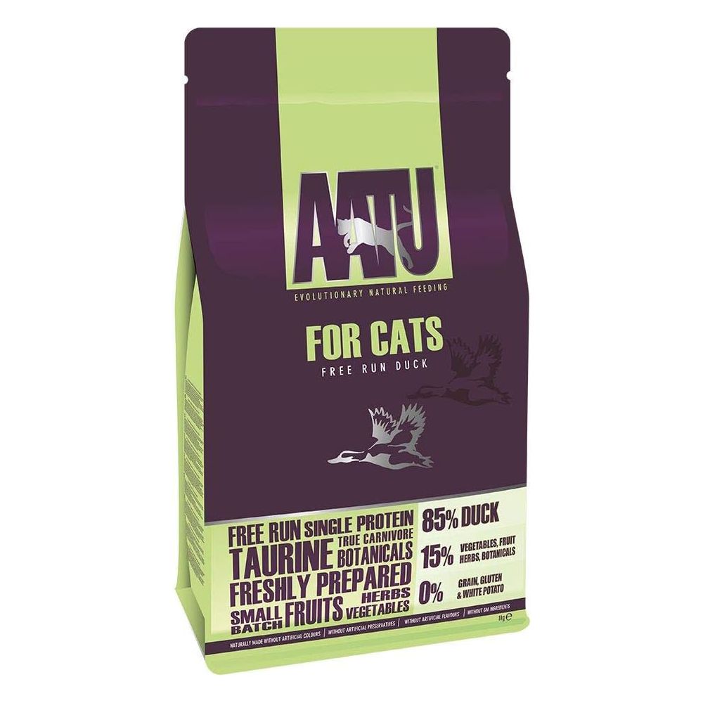 | AATU 85/15 ダック | AATU | 成猫用 | 全猫種対応 | 200g/1kg / 3kg | 85% ダック(ダック生肉 70%、脱水ダック 15%)、サツマイモ | スペイン | 単一鴨肉使用、グレインフリー | 407kcal/100g | 0.8mm | 丸形 | ★★★★☆(4.5) 推定 |