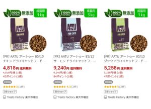 AATU(アートゥー)公認のオンラインショップとして登録されており、チキン・サーモン・ダックなど主要ラインナップをすべて取り扱っています。