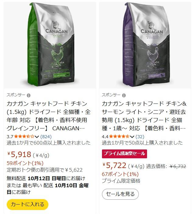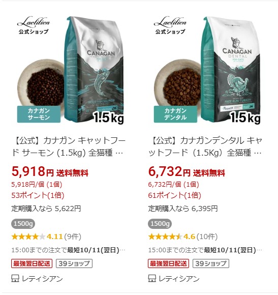 結論から言うと、楽天市場・Amazonどちらでもカナガンを購入できます。