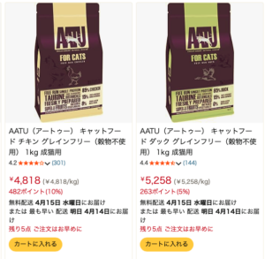 AATU(アートゥー)のキャットフードは終売の影響で、価格差が大きい・在庫にばらつきがある状況です。