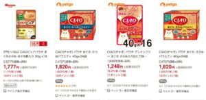 楽天市場では、CIAOパウチの大容量パックやバラエティセットが豊富に揃っていて、まとめ買いしやすいのが大きな魅力です。