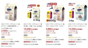 同じフードでも、800g・1.5kgなど内容量によって単価が変わります。