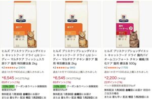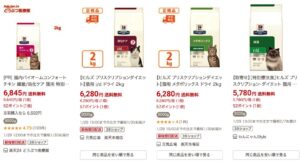 Amazonでもいくつかのヒルズ プリスクリプションダイエット商品が取り扱われています。