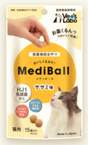 | メディボール チーズ味 | Vet’s Labo | 成猫〜高齢猫 | 全猫用 | 15粒(約20g) | 鶏ササミ・チーズパウダー | 日本 | チーズの濃厚な香りで食欲を刺激しやすく挑戦しやすい味 | 約308kcal/100g | 約1cm | やわらかいボール状 | ★4.4 |