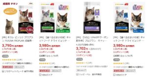 Amazonでも、ピュリナ プロプランは豊富に揃っており、定期おトク便を利用すると5〜10%割引が適用されるのが強みです。