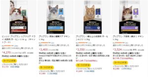 Amazonでは、ピュリナ プロプランの対象商品を定期おトク便にすると5〜10%割引が適用されます。
