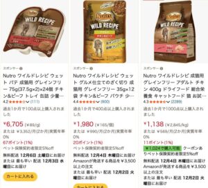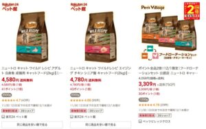 ワイルドレシピは、実店舗で見つけづらいぶん、通販での扱いが比較的多めです。